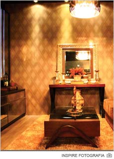 O papel de parede ganha cada vez mais espaço como tendência contemporânea. É uma excelente opção para quem pretende fazer a mudança na decoração de interior sem mexer na estrutura do local. Um exemplo foi montado pelas arquitetas Kamila Goulart e Monique Frezza do escritório Edifique, de Içara, na Feira Casa Pronta realizada neste ano em Criciúma. Elas utilizaram uma releitura do couro para deixar o espalho mais moderno e sofisticado.