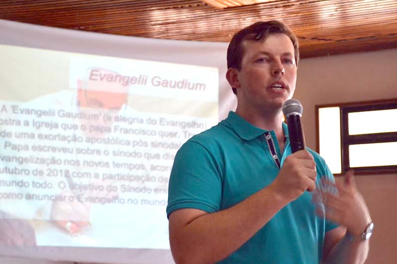 Coordenadores de pastorais de toda a Paróquia São Miguel estiveram reunidos no sábado, dia 29. Neste ano, a Assembleia Paroquial ocorreu com a apresentação do Evangelli Gaudium [Evangelho da Alegria] escrito pelo Papa Francisco. “Nossa Igreja precisa transmitir a alegria de ser de Deus. Só faz bem isto quem viveu uma experiência pessoal com Jesus. É essencial refletir um rosto alegre, de alguém que serve motivado e feliz porque é íntimo de Deus”, destaca Fagner Wiliam.