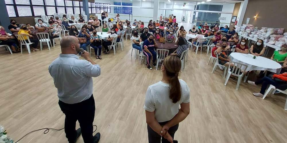 Presidentes e vice-presidentes dos 47 Clubes de Mães de Içara foram recebidas no Paço Municipal Ângelo Lodetti nesta quarta-feira, dia 15. O encontro teve a distribuição de 950 toalhas de mesa para as participantes, além de um café de agradecimento do Departamento de Fomento a Atividades Inclusivas (FAI).