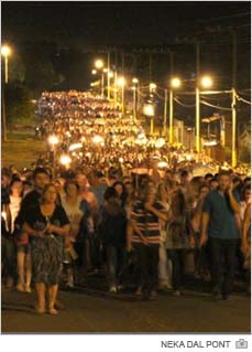As reflexões sobre a morte de Jesus foram complementadas por uma procissão nesta sexta-feira, dia 18. O trajeto pela primeira vez iniciado no Santuário Coração de Jesus contou com a participação de milhares de católicos. Toda esta demonstração de fé preencheu parte da estrada geral de Segunda Linha, a Rodovia Lino Zanolli e ruas centrais de Içara até a Matriz São Donato. Como tradição, o caminho para o Cristo morto foi iluminado por velas carregadas pelos fieis e também expostas nas casas e empresas que margeiam o percurso.