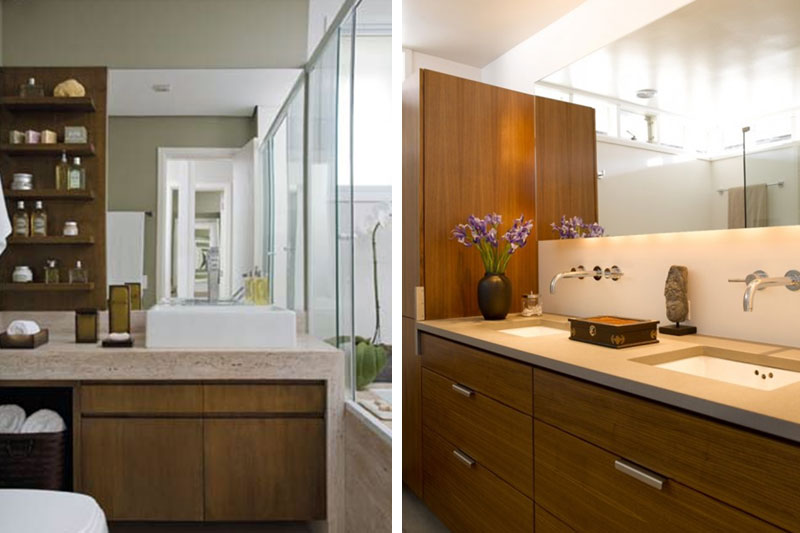 O banheiro deve, obrigatoriamente, possuir revestimento cerâmico nas paredes. Plantas são bem vindas. Todavia sempre com espécies que gostem de ambientes úmidos. Espelhos são ótimos para ampliar o banheiro. Eles também melhoram a iluminação. Porém, antes de furar qualquer parede, verifique onde passam as tubulações de água.