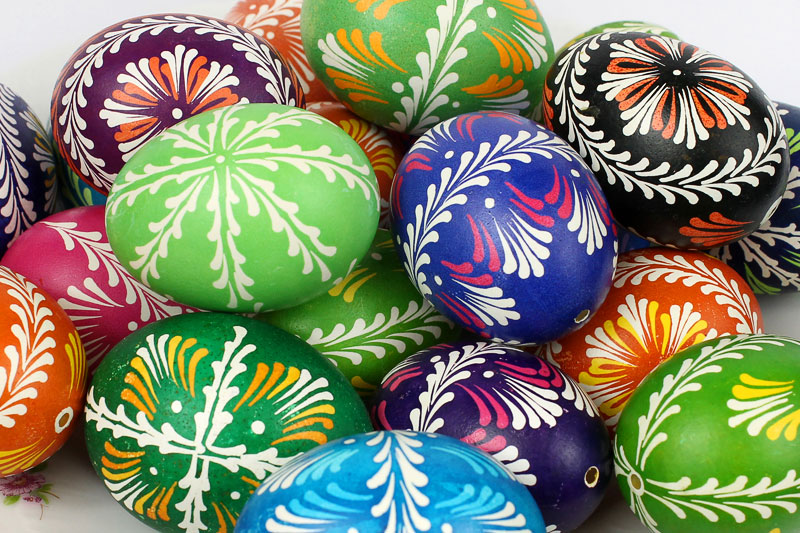Os ovos decorados principalmente com o desenho de aves, flores, cruzes, cordeiros, peixes e árvores são os primeiros alimentos consumidos em família. O material utilizado simboliza o renascimento conforme a cultura cristã. As cascas riscadas com alfinete, pintadas e enfeitadas com colagens também costumam ser guardadas devido ao misticismo de que auxiliam na cura, proteção, prosperidade e abundância.