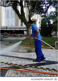 Praças recebem limpeza para o Natal