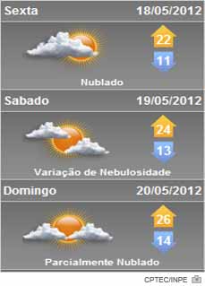 No sábado e domingo uma massa de ar seco e quente mantém o predomínio de Sol em todas as regiões de Santa Catarina. Temperatura elevada. Vento de nordeste a noroeste, fraco a moderado. Ainda conforme a Epagri/Ciram, na segunda-feira e nos próximos dias o clima permanece mais seco, sem chuva significativa em SC. As temperaturas ficam entre quatro e 24ºC.