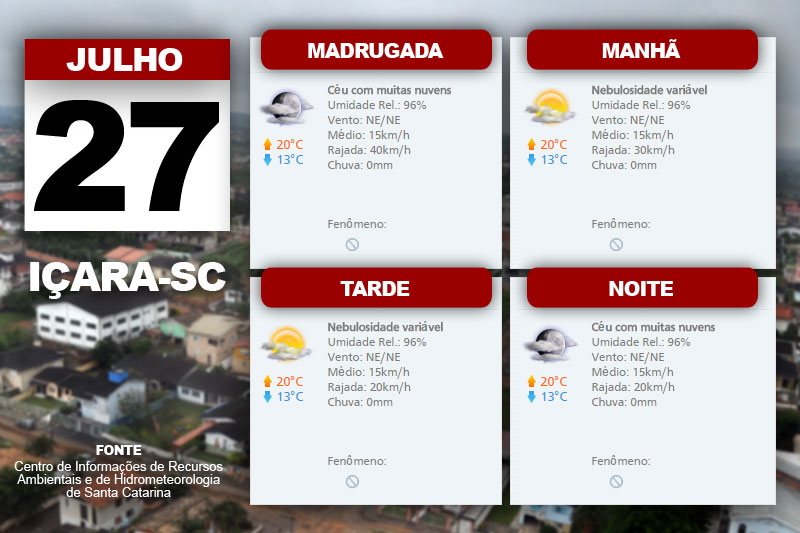 Enfim, o tempo firme com Sol atinge todas as regiões de Santa Catarina nesta segunda-feira, dia 28. A temperatura consequentemente aumenta. Além disso, o Centro de Informações de Recursos Ambientais e de Hidrometeorologia de Santa Catarina indica que o ar seco sobre o Sul do Brasil manterá o tempo firme ainda pelos próximos dias. Na quarta-feira a temperatura será até mesmo elevada para a época do ano.