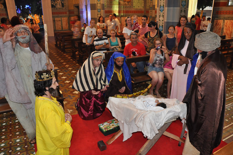 A chuva não impediu o encerramento do Presépio Vivo. Tampouco afastou expectadores. Ao contrário. A teatralização foi levada para o interior da Igreja da Misericórdia e atraiu ainda mais fiéis para o templo reaberto neste domingo, dia 21. A finalização contou com a colocação de Jesus na manjedoura e a chegada dos reis magos sob olhares atentos e muitos registros fotográficos. A encenação ao longo de todo o Natal Luz foi realizada pelo grupo Doutores da Paz.