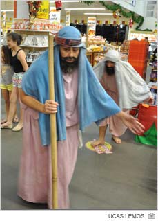 Por alguns minutos, clientes deixaram de procurar presentes para observar rebanhos de ovelhas imaginárias no comércio de Içara na noite desta terça-feira, dia 17. A encenação dos pastores marcou o início do presépio vivo do Natal Luz de 2013. A teatralização vai continuar até o dia 23. Parte do elenco circulará pelas lojas. Além disso, o espetáculo utilizará o curral montado na Praça São Donato.