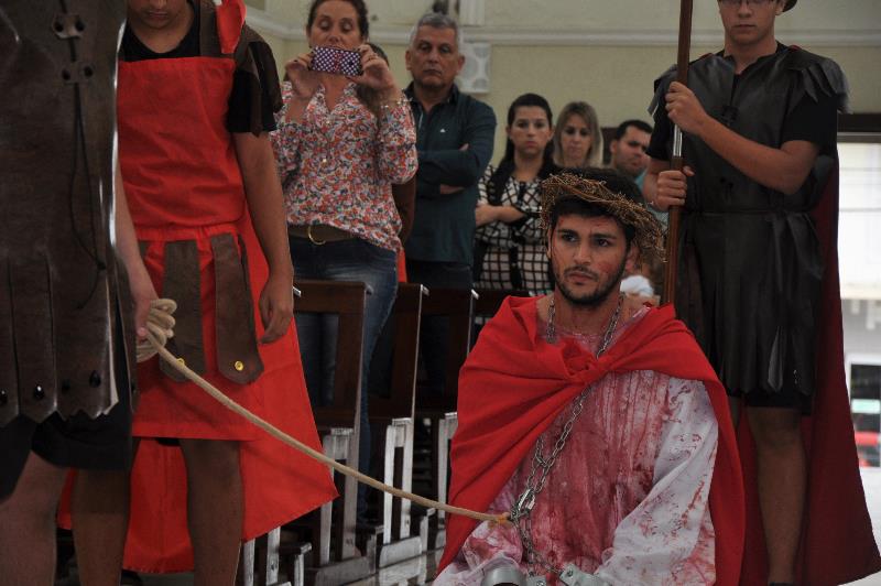 Há seis anos Jovany da Silva Souza atua na Via Sacra como parte da encenação. Desta vez, além de ser um dos soldados, o jovem morador do bairro Presidente Vargas ficou responsável pela coordenação. E junto com ele outras 15 pessoas participaram da montagem nesta sexta-feira, dia 25. "Este é um momento importante de reflexão para os cristãos. A crucificação demonstra o amor de Deus, que deu seu filho para nos salvar. É também um gesto de humildade que devemos seguir", enaltece.