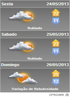 No sábado a massa de ar frio e seco favorece a formação de nevoeiros na madrugada e amanhecer, com presença de Sol na maior parte do dia. Temperatura baixa na madrugada e manhã, com mínimas entre zero e negativas em localidades do Meio Oeste e Planalto Sul com formação de geada. Nestes próximos dias os termômetros mostram de -2ºC a 25ºC.
