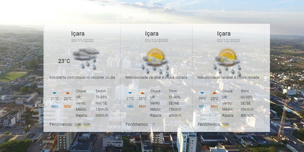 A Defesa Civil alerta para a possibilidade de novas instabilidades no tempo nesta segunda-feira, dia 30. As condições de temporais continuarão ainda pelos próximos dias. Para Içara, o Centro de Informações de Recursos Ambientais e de Hidrometeorologia de Santa Catarina indica de 17°C a 28°C.