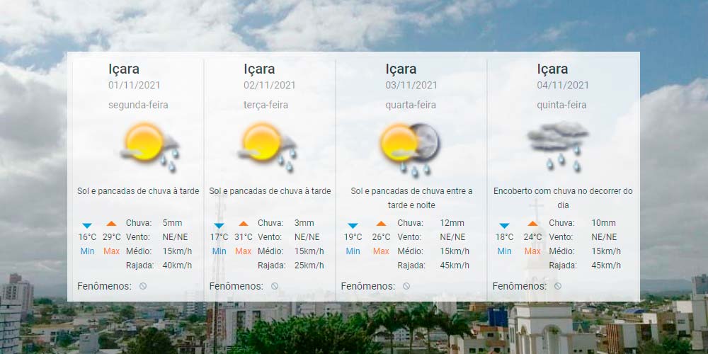 Tempo: chuva no decorrer do dia, bem distribuída em todas as regiões.