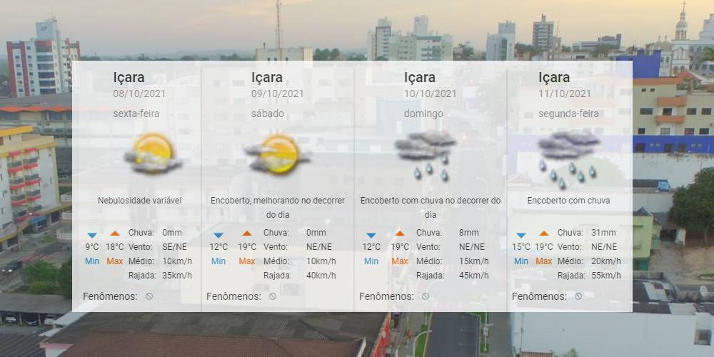 Sábado será de atividades voltadas às crianças em Içara. Além do horário estendido do comércio até às 17h, vai ter ação na Praça São Donato e na Rua Marcos Rovaris. E o tempo vai colaborar para a interação das famílias. A previsão é de céu encoberto, mas com melhoria no decorrer do dia. A possibilidade de chuva ficará somente para domingo. Quanto a temperatura, para Içara, o Centro de Informações de Recursos Ambientais e de Hidrometeorologia de Santa Catarina aponta de 9°C a 19°C nestes próximos dias. Confira a previsão completa.