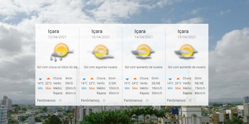 Para Içara, previsão é de 14°C a 26°C nos próximos dias