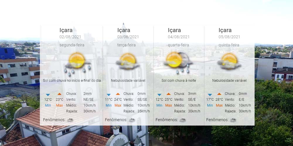 A semana será de nebulosidade variável, mas com pouca chuva na Região Carbonífera. A previsão é ainda de elevação na temperatura. Para Içara, o Centro de Informações de Recursos Ambientais e de Hidrometeorologia de Santa Catarina indica de 11°C a 28°C até quinta-feira. Confira o detalhamento abaixo.