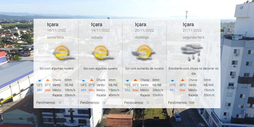 A temperatura segue em elevação e deve ultrapassar os 30°C no fim de semana. O Centro de Informações de Recursos Ambientais e de Hidrometeorologia de Santa Catarina indica também o aumento de nuvens a partir de domingo. Mas essa nebulosidade poderá resultar em chuva apenas na segunda-feira com até 3mm. Confira o boletim na íntegra: