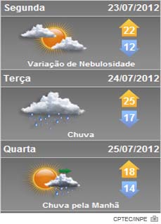 Em alguns momentos, a chuva pode ser moderada a forte, especialmente no Oeste e nas regiões mais próximas ao Rio Grande do Sul. Temperatura estável, com pequena variação entre a mínima e máxima devido a cobertura de nuvens. Na madrugada e manhã de quarta a instabilidade e a chuva permanecem. No decorrer do dia, a nebulosidade diminui e o Sol aparece em boa parte do estado devido ao avanço de uma massa de ar seco e frio pelo Sul do Brasil.