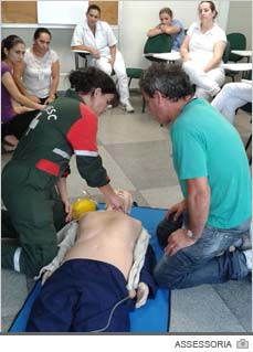 Auxiliares e técnicos de enfermagem, enfermeiros e médicos do Hospital São Donato e da Secretaria Municipal de Saúde de Içara estão em capacitação com a Unesc nesta sexta-feira, dia 21. Os cuidados ocorrem sobre parada cardiorrespiratória. A promoção das aulas é da Linha Urgência e Emergência do Programa de Reorientação Profissional e de Educação pelo Trabalho com a enfermeira socorrista Zoraide Rocha e estudantes.