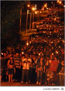 O tempo colaborou e mais de 20 mil pessoas fizeram parte da procissão penitencial entre o bairro Aurora e a igreja matriz São Donato. O evento católico ocorreu na noite desta sexta-feira, dia 29. Ao todo a multidão ocupou simultaneamente quase um quilômetro do trajeto. Para alguns dos fiéis o percurso foi em dobro. Entre ida e volta cumpriram 10 quilômetros de caminhada.