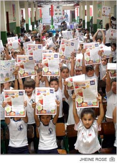 A Escola Antônio Colonetti encerrou o projeto de leitura com a visita do Professor Fortulino nesta última segunda-feira, dia 5. O personagem e a contadora de histórias Jheine Rose Danielski foram recebidos com uma exposição dos trabalhos produzidos no ciclo letivo. Em retribuição todos os estudantes receberam um jornal.
