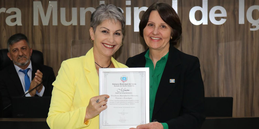 O Poder Legislativo também entregou moção à Secretaria Municipal de Educação, Ciência e Tecnologia de Içara pela conquista. “Esse resultado é consequência da união dos pais, professores e alunos, para melhorar a qualidade da educação no nosso município”, destaca a proponente do reconhecimento, a vereadora Silvia Mendes, a Marreca (PSDB).