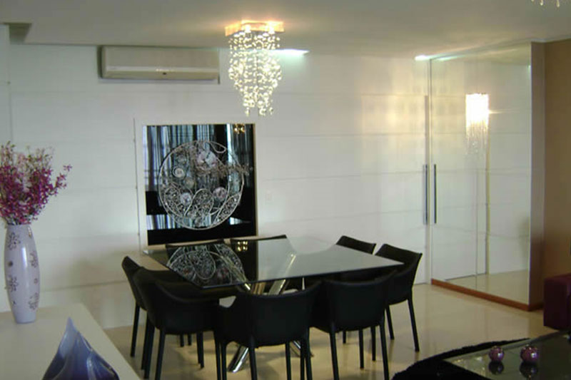 Um capítulo importante na hora compor o espaço das refeições é a iluminação. É essencial definir exatamente o lugar da mesa para planejá-la. Pode-se usar plafond ou spots estratégicos, mas um pendente no centro da mesa é o mais indicado.