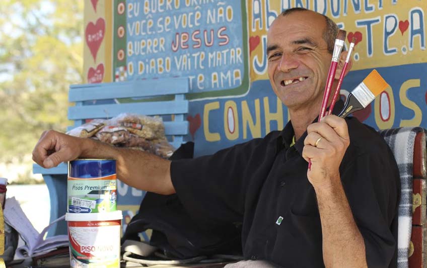 Em uma tenda cheia de cores e mensagens de amor está Ramos Martins. Com um sorriso no rosto e uma boa dose de palavras de fé, Irmão Ramos recebe com carinho todos aqueles que passam pela tenda no bairro Esplanada, em Içara. As mensagens que decoram o lugar são frutos da fé inabalável fortalecida pelas dificuldades da vida. Inspirado nos textos pintados letra a letra surgiu a fonte Abençoada. São 80 caracteres em caixa-alta destinadas a captação de recursos para que Irmão Ramos tenha materiais e tintas para continuar o trabalho.