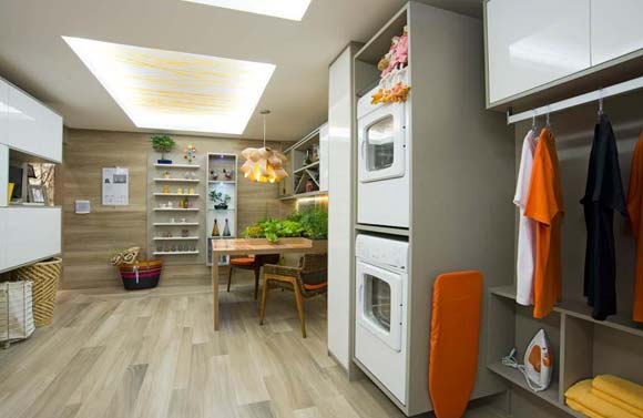 Uma área de serviço precisa ser organizada e funcional. E ainda dá para ficar charmosa. Uma dica é embutir a lavadora de roupas em uma bancada à prova d´água. O planejamento do local pode incluir também um compartimento para roupas sujas e até uma tábua de passar embutida. Para dar mais cor aos azulejos, uma alternativa é investir na pintura epóxi. E se depois disso tudo ainda sobrar espaço, dá para acrescentar um cantinho para as costuras ou o plantio de temperos.