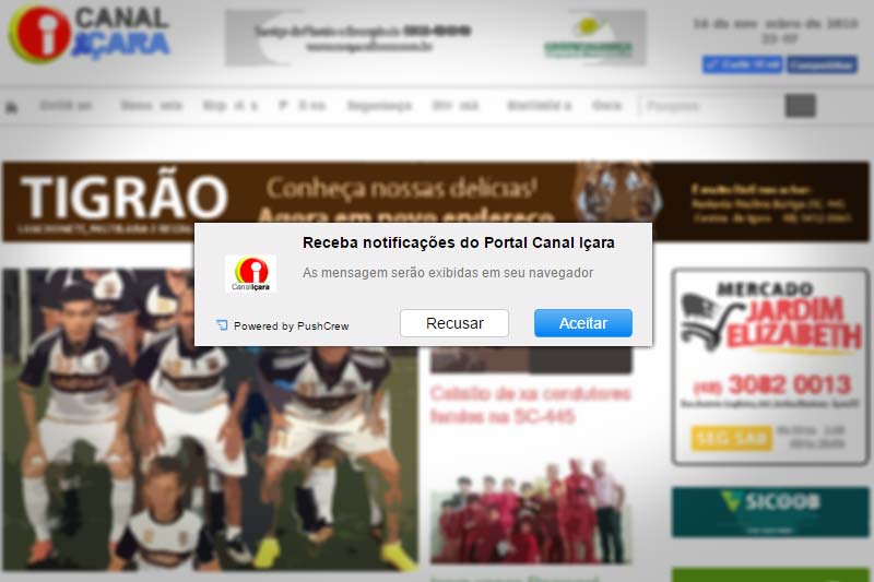 Como fazer? Para aderir, basta clicar no botão PUSH CANAL IÇARA exibido nas páginas internas do site ou aceitar o convite através de uma caixa de alerta exibida após permanecer 30 segundos no site
