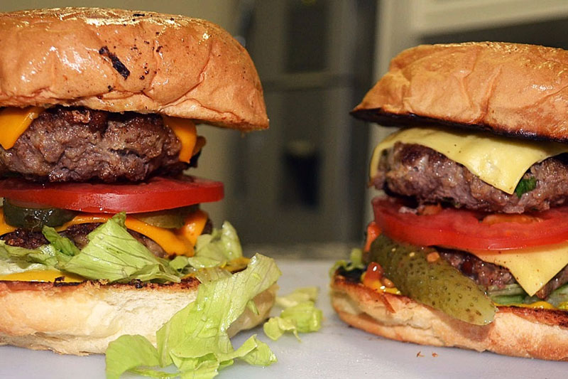 Para esta receita separe 500g de carne moída, dois ovos, queijo cheddar e mozzarella, picles, alface americana, tomate, cebolinha picada, cebola roxa em cubinhos, azeite de oliva ou óleo harmonizado com bacon, além de sal e pimenta a gosto. As quantidades de muitos ingredientes dependem do gosto do cozinheiro... Confie em seu talento e reinvente!