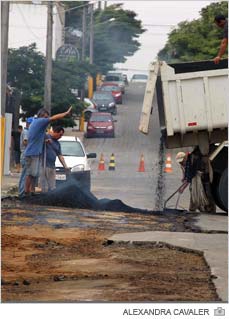 Recuperação asfáltica inicia pelo Centro
