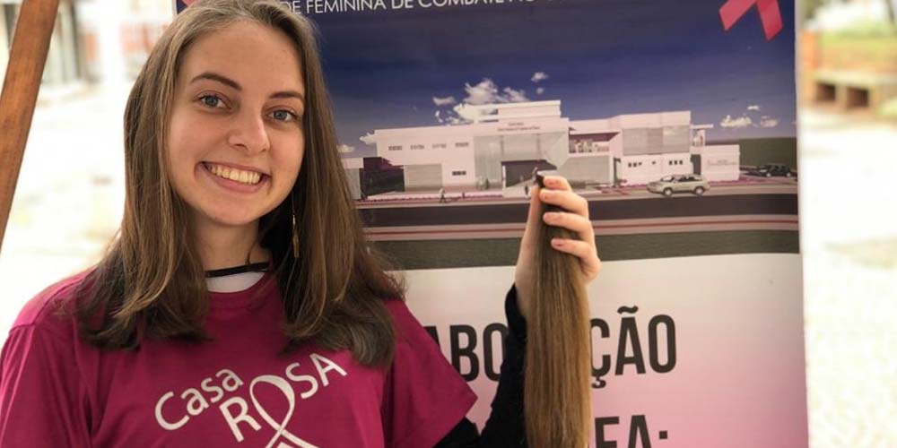 Uma das camisetas foi adquirida por Milena Lubavi, de 21 anos. Motivada pelo desejo de contribuir com outras mulheres, a jovem decidiu também entregar parte dos cabelos. Segundo ela, devido ao peso inferior a 50kg, não pode doar sangue. Há dois anos a estudante de Psicologia deixa o cabelo crescer então para cortar em outubro e doar a quem precisa. Desta vez, a escolha foi a Rede Feminina de Combate ao Câncer. “A profissional na qual efetuou o corte de cabelo, totalmente gratuito, me indicou a Rede e, quando cheguei ao Centro de Içara, as voluntárias estavam presentes”, ressalta.