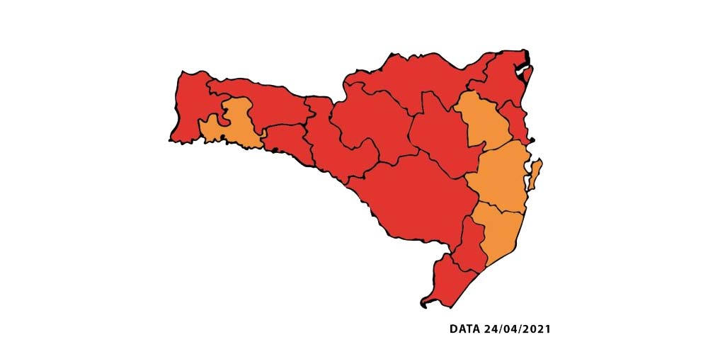 Das 16 regiões catarinenses, 12 estão no nível mais elevado da escala de risco potencial a covid-19