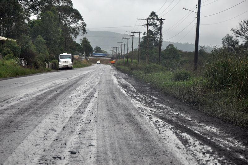 Os primeiros 50m da Rodovia Arino Antônio Cândido (Acesso Sul) a partir da BR-101 exigem atenção dos motoristas devido a material mineral na pista. O problema atinge principalmente o trecho em direção ao oeste. Em dias de chuva o acostamento chega a ficar inutilizável. “Vamos requisitar que um fiscal vá até o local para verificar a situação”, coloca o diretor interino do Departamento Municipal de Trânsito, Eduardo de Mello Ferreira.