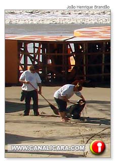 Assim como a ressaca, parte dos operários que montaram a estrutura do Praião e do Garota Verão voltaram na manhã desta sexta-feira, dia 26, para a orla do Balneário Rincão. Isto porque a força da água causou estragos na beira da praia. A correria é para deixar tudo pronto para a final do concurso de beleza promovido pela RBS TV. Os últimos desfiles do evento acontecem na manhã de sábado, dia 27. E também para as semifinais do Praião.
