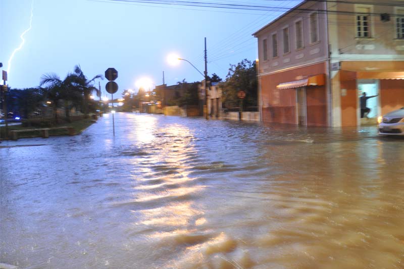O Rio Içara não deu vazão suficiente ao volume de chuva na noite desta quinta-feira, dia 19. E novamente as ruas mais baixas no centro de Içara voltaram a ficar abaixo da água por volta das 20h20. Na Getúlio Vargas e na Marcos Rovaris carros foram colocados para evitar que outros veículos passassem e elevassem ainda mais o nível. Na Rua Vitória, os motoristas não evitaram o tráfego. Nem na Avenida Procópio Lima, onde o alagamento encobriu as calçadas.