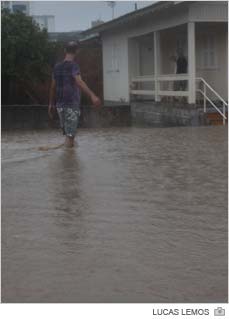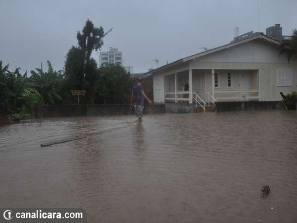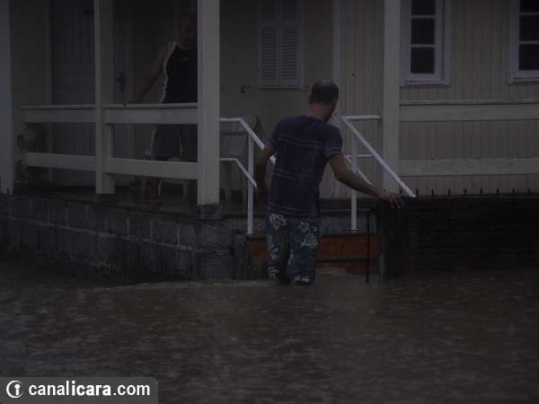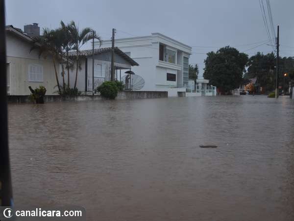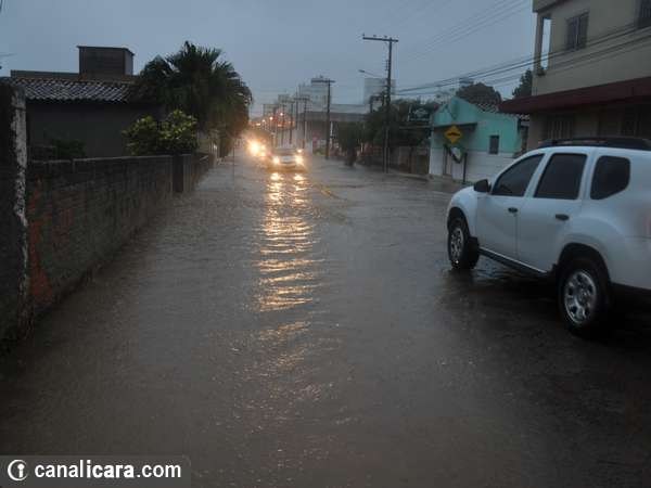 O caminho para o trabalho exigiu um pouco mais de paciência na manhã desta sexta-feira, dia 14. Em Içara, algumas das principais ruas ficaram alagadas, tiveram congestionamentos ou acabaram inclusive bloqueadas. É o caso da Anita Garibaldi e da Duque de Caxias, ambas afetadas pela falta de vazão do Rio Içara. Quem buscou alternativas para acessar, por exemplo, o Colégio Cristo Rei e voltar ao Centro também enfrentou dificuldades pela Avenida Procópio Lima ou na Rua Sete de Setembro. A lâmina chegou a quase 50cm e um carro que havia ficado estacionado na Rua Luiz Colle acabou invadido pela água.