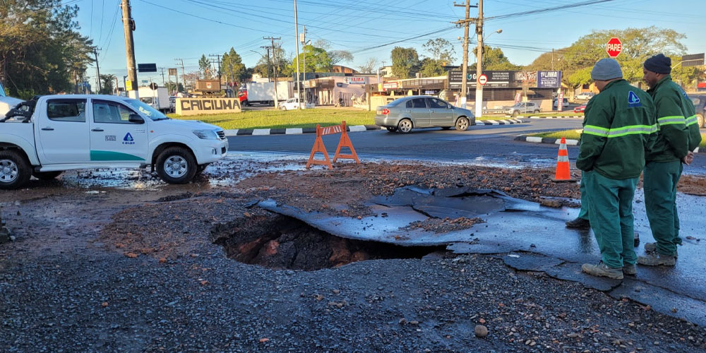 O rompimento de uma adutora no bairro Primeira Linha, na rotatória próxima ao 28º Grupo de Artilharia de Campanha, em Criciúma, atingiu o abastecimento de Içara na madrugada desta quarta-feira, dia 30. A equipe da Companhia Catarinense de Águas e Saneamento (Casan) já está no local, entretanto não se sabe quanto tempo vai demorar para terminar o serviço. A previsão de normalização do abastecimento é para depois das 20h.