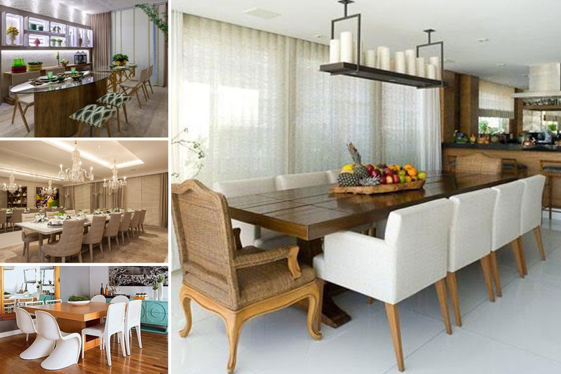 Além disso, a iluminação é muito importante. Pense em um lustre que dê valor ao espaço. E não se esqueça das flores. Outra dica é mesclar cadeiras. Esta é uma forma de garantir requinte sem precisar comprar um conjunto inteiro de peças, algumas vezes, caras.