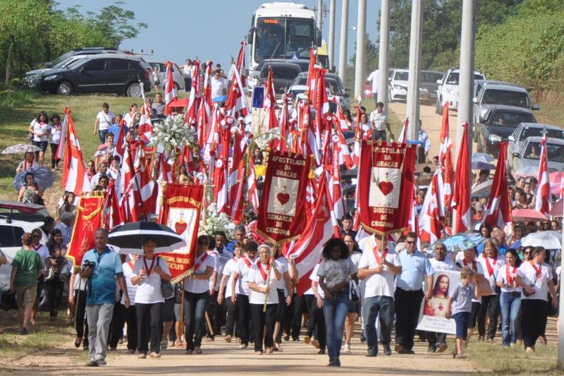 A cada festividade dedicada ao Sagrado Coração Misericordioso de Jesus, José Olekssei se impressiona com a evolução das obras. "Agora falta pouco", testemunha na contagem regressiva para a inauguração. Além da bandeira carregada pelo morador da comunidade de Poço Oito, estandartes do apostolado da oração de 33 comunidades paroquiais da diocese também fizeram parte da procissão deste domingo, dia 3.