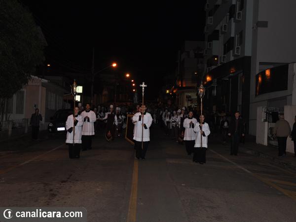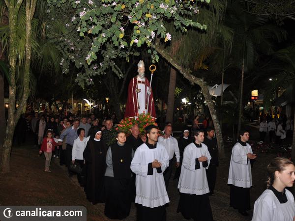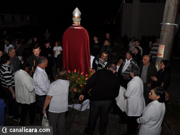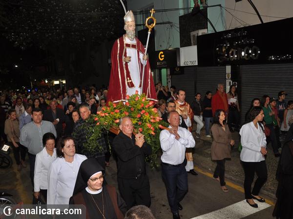A caminhada da entidade hospitalar até a Igreja Matriz abriu programação religiosa da festividade em honra a São Donato nesta quarta-feira, dia 6. Ainda com a vestimenta antiga, o padroeiro entrou na Casa da Cultura. E de lá saiu já paramentado com o trabalho carinhosamente feito pela família escolhida. A capa vermelha que estava até então sobre a imagem havia sido colocada por Maria da Silva. “Doei em sinal de amor”, ressalta a samaritana.