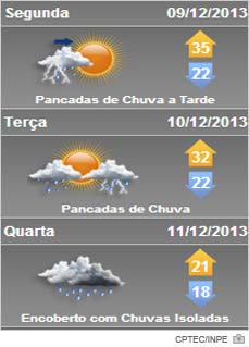 O Sol volta a aparecer na quarta-feira e quinta-feira, contudo, com mais nuvens e chuva isolada no Litoral pela manhã. O vento será de Sudeste a Nordeste entre fraco e moderado. A situação não é muito diferente para sexta-feira. A tendência é de ar mais seco e temperatura alta. O calor, por vez, pode também provocar chuva entre a tarde e a noite.
