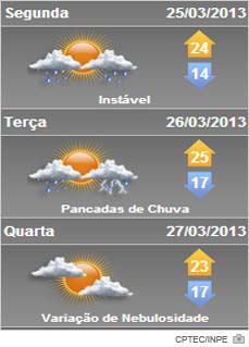 Na terça-feira um sistema de baixa pressão no oceano, próximo à costa, traz chuva para a madrugada e manhã nas áreas do Planalto ao Litoral. Nas outras regiões, Sol entre nuvens. Já na quarta e quinta-feira o tempo fica firme com Sol entre nuvens na maioria das regiões de SC em boa parte do período. Conforme a Epagri/Ciram, as temperaturas variam dos 7ºC aos 28ºC.