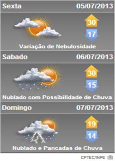 No domingo a frente fria avança então por SC e mantém variação de nuvens em todas as regiões na maior parte do dia. A chuva, se surgir, será de forma isolada do Oeste ao Litoral Sul e à noite no Alto Vale do Itajaí, Grande Florianópolis, Planalto Norte e Litoral Norte. Temperatura amena durante o dia devido a nebulosidade e à chuva.