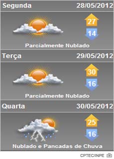 Na quarta, tempo instável com chuva no decorrer do dia nas regiões do Oeste ao Sul do Estado. Nas demais regiões, pancadas de chuva entre tarde e noite. Ainda conforme a Epagri/Ciram, na quinta-feira haverá melhora no decorrer do dia, mas ainda chove isoladamente na faixa leste do estado. Temperatura amena. Ventos de sudoeste a sudeste, fraco a moderado com rajadas.