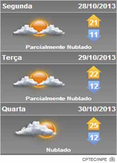 Nesta segunda-feira a massa de ar seco permanece no Sul do Brasil mantendo presença de Sol em Santa Catarina com algumas nuvens no litoral. Durante a terça o ar seco mantém presença de Sol com mais nuvens do Planalto ao Litoral. No início e fim do dia pode ocorrer chuvisco na faixa litorânea. Temperatura elevada durante o dia e baixa na madrugada e amanhecer, com chance de formação de geada muito fraca e isolada nas áreas altas do Planalto Sul.