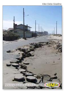 No último final de semana a destruição foi uma das maiores que já ocorreu. Lajotas se soltaram, a água invadiu várias ruas próximas ao mar e trouxe muitos lixos e bichos mortos para a orla.