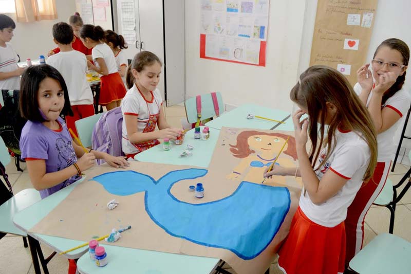 “Começamos contando as lendas e mostrando alguns vídeos. Trabalhamos algumas parlendas e trava-línguas. Depois os alunos foram divididos em equipes para pintar alguns personagens conforme as lendas. Foi realizado um painel também”, apresenta a professora Bruna Casagrande, da disciplina de Artes. “Alguns que já tinham conhecimento sobre o folclore até contaram outras lendas que não estavam sendo discutidas em sala de aula”, comenta.
