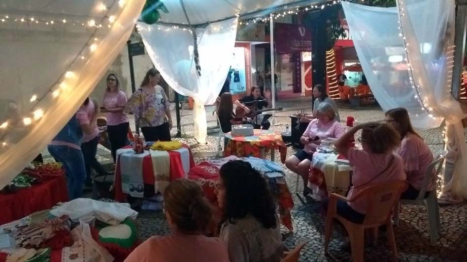 O som do violão de Rafael Bacis, da percussão de Harlan Mello e da linda voz de Karol Calegari compuseram a junção acústica do Natal Luz na noite desta terça-feira, dia 19. A interação inédita entre os três artistas movimentou a Praça da Matriz São Donato junto com a feira do setor de Fomento às Atividades Inclusivas. A exposição de artesanato iniciou nesta terça-feira e continuará até quinta-feira no Espaço Natal Compartilhado.