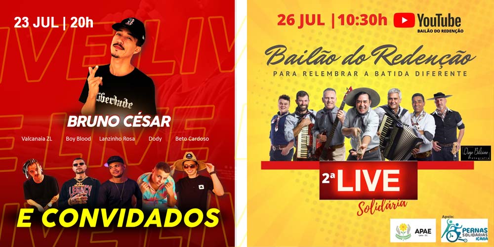 Já no próximo domingo acontecerá a segunda edição do Bailão do Redenção a partir das 10h30. O encontro de Frankinho Cardoso (voz), Josiel Lindemann (baixo e voz), Vilson Darolt (gaita), Fabiano Duarte (guitarra e voz), Willian Speck (percussão), Anderson "Dando" (bateria), Jorge "Botão" (voz e percussão) e Edson Fenali (violão e voz) desta vez será para a arrecadação de donativos para famílias assistidas pela Apae de Içara. O show poderá ser acompanhado pelo perfil da banda no YouTube (clique e acesse o canal)