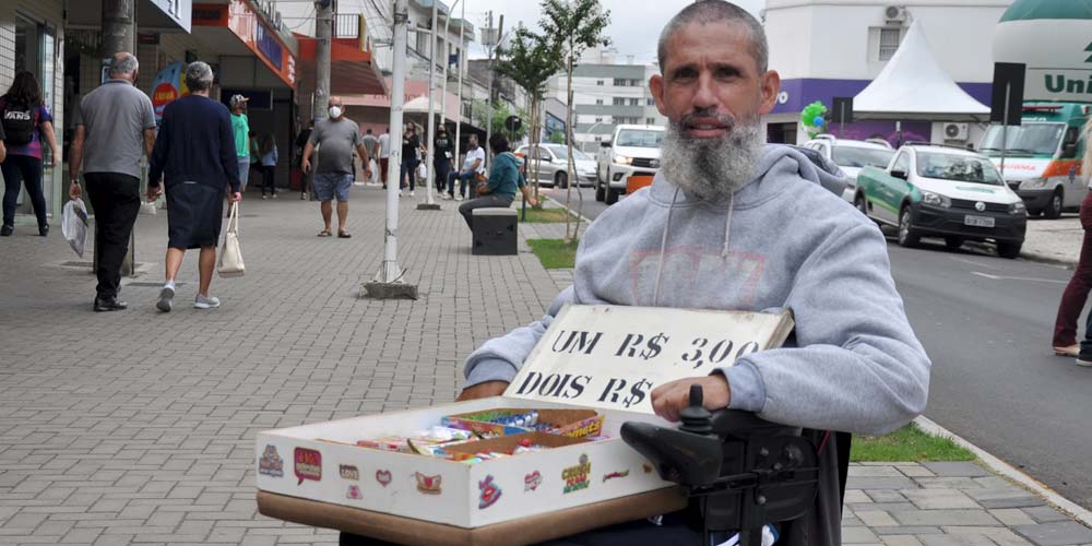 Anadírio é uma pessoa pra frente e virou uma referência em Içara também como presidente do Conselho Municipal dos Direitos da Pessoa com Deficiência, um espaço de luta pela acessibilidade. Tem tantas pessoas que podem fazer tudo e sofrem de depressão. Ele não tem esse tipo de problema, gosta de levantar e já sair para o Centro conversar com as pessoas. Alguns gostam de conversar, elogiam seu trabalho e persistência. Alguns nem ficam com os doces, apenas fazem sua contribuição. Estar no Centro, trabalhando, faz sentido à sua vida. Sua disposição contagia outras pessoas.